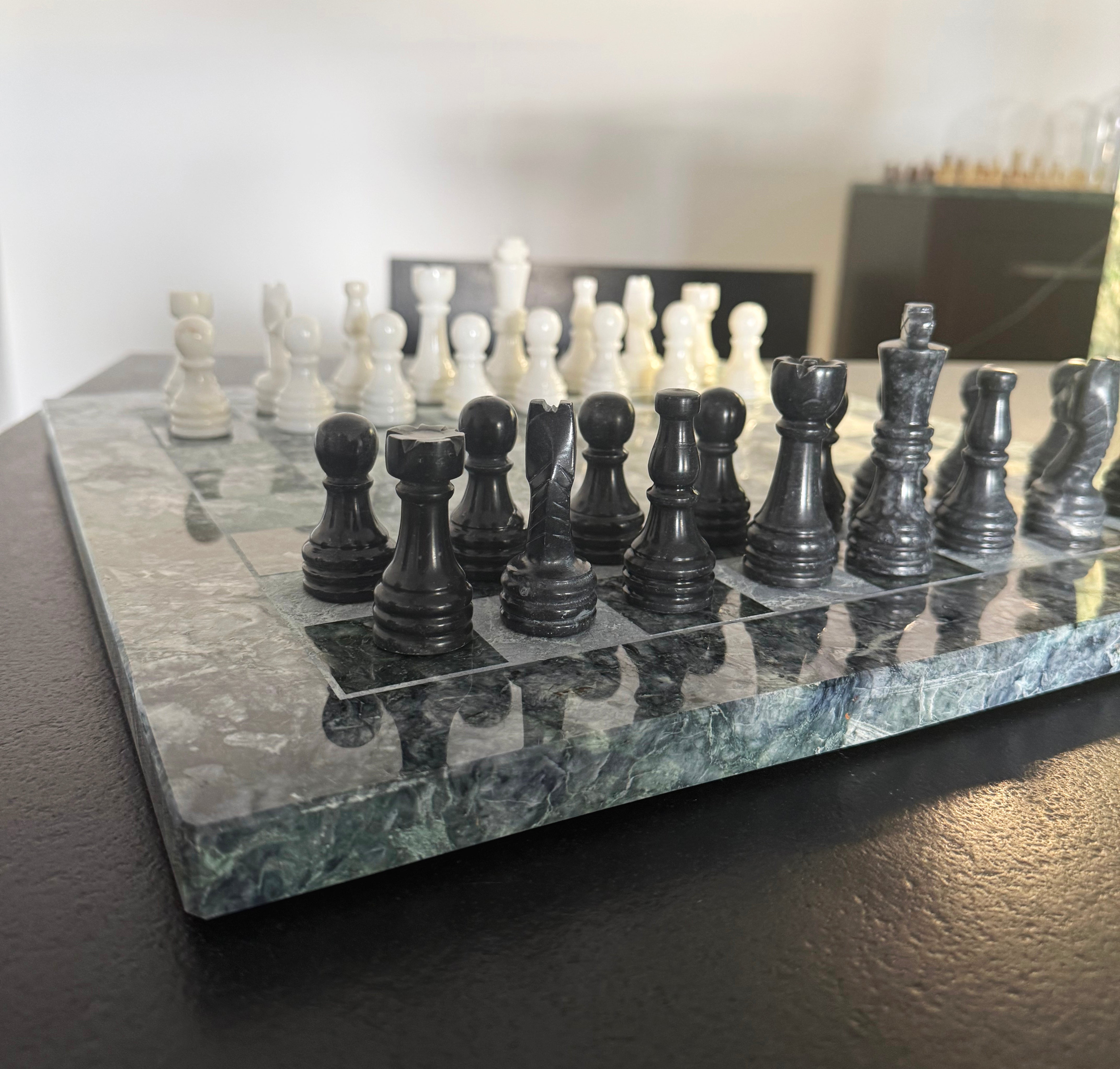 Échiquier en Vert d’Orezza – Pièces sculptées